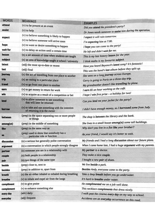 ingles vocabulario de cara al writting del examen de pau/ebau