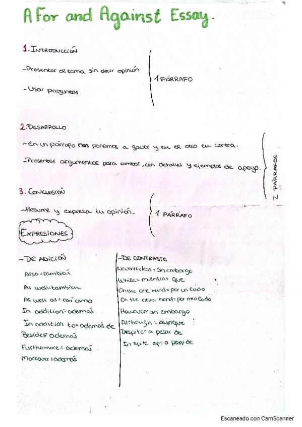 Como hacer un writing de for and against correctamente