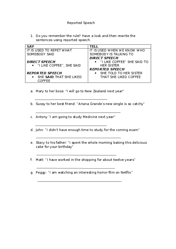 He publicado nuevos ejercicios de 4º Inglés: Exercise-Reported-Speech.docx