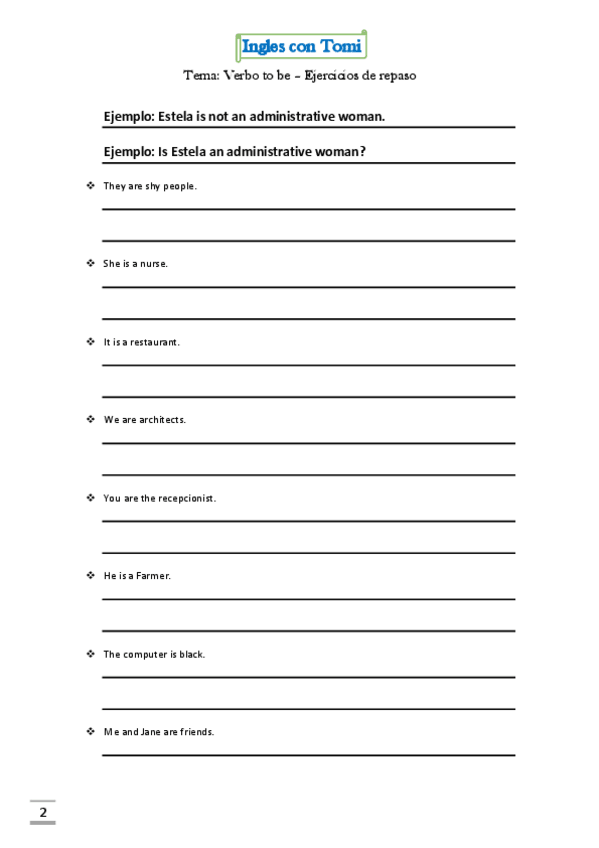 Verbo to be - ejercicios con keys para que puedas evaluar tus respuestas, enjoy!