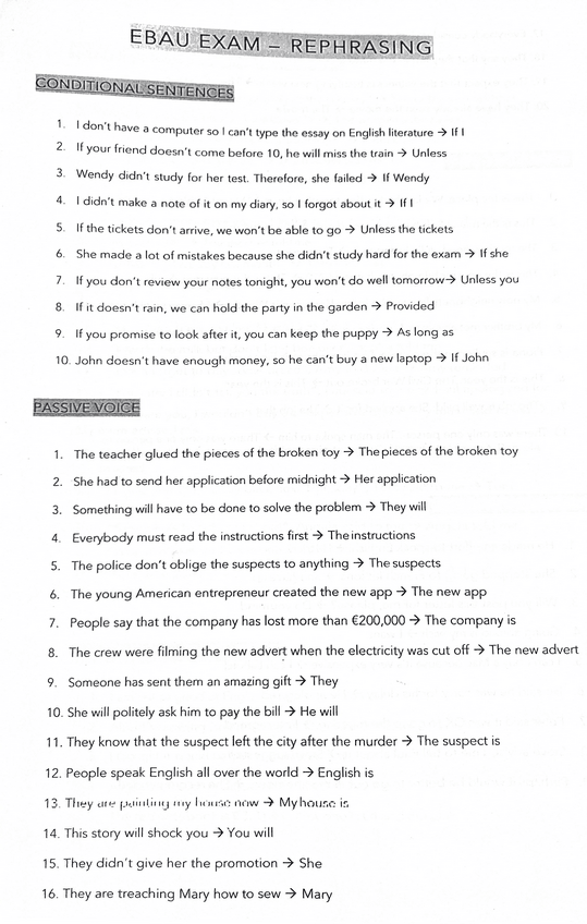 He publicado nuevos ejercicios de Inglés: reprhasing PAU