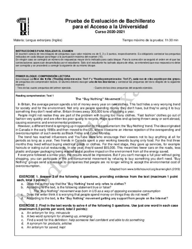 Modelos EBAU Inglés 2020-2021