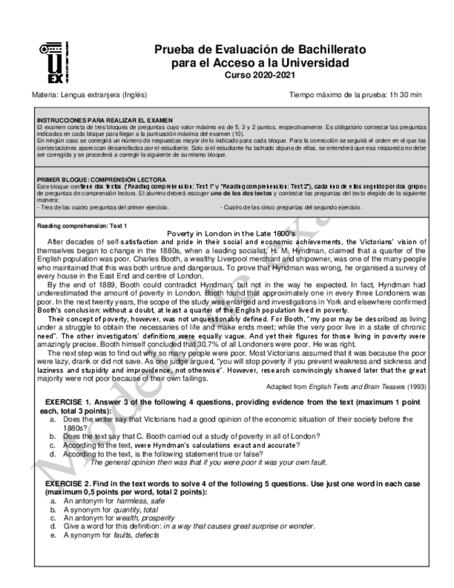 He publicado nuevos examenes de Inglés: Modelos EBAU Inglés 2020-2021