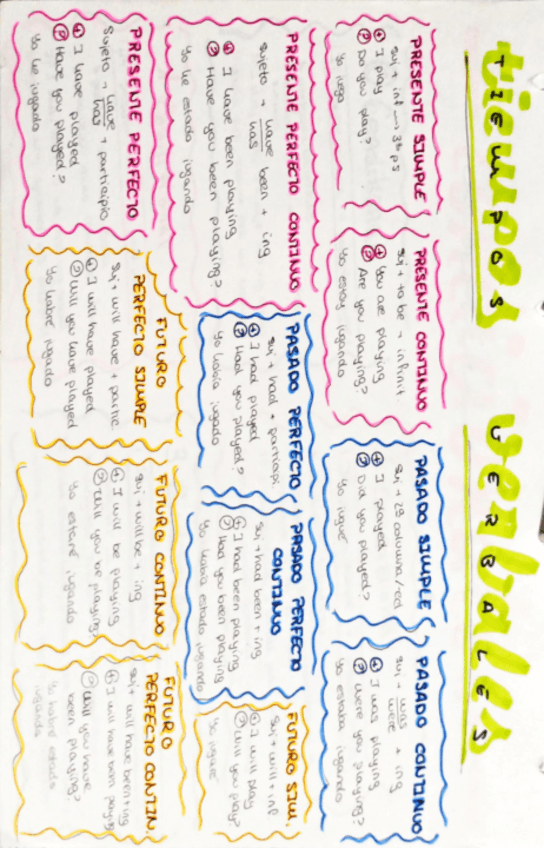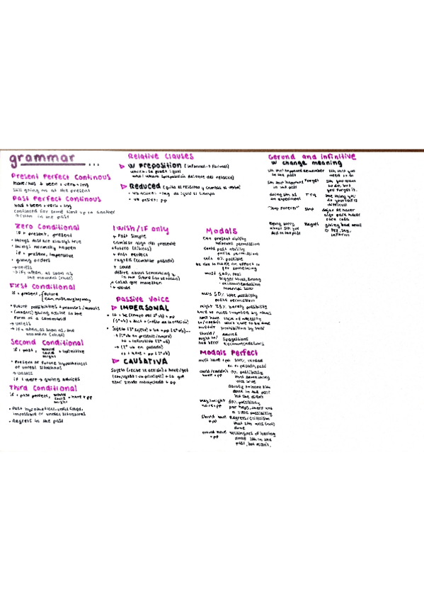 Aquí os dejo un resumen claro y sencillo de toda la gramática inglesa, tiene tiempos verbales, pasiva, condicionales, reported speech, conectores, etc.