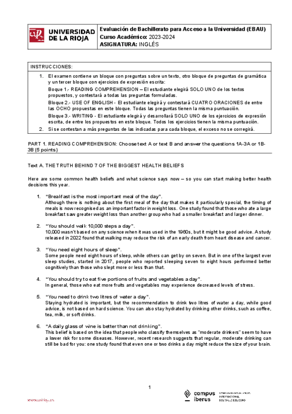 Exámenes Inglés EBAU LA Rioja 2022