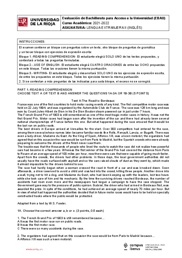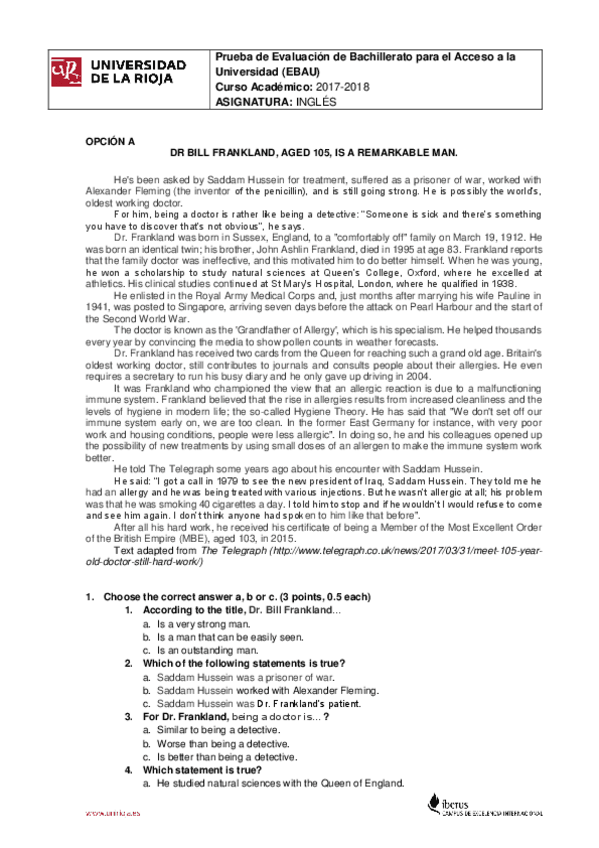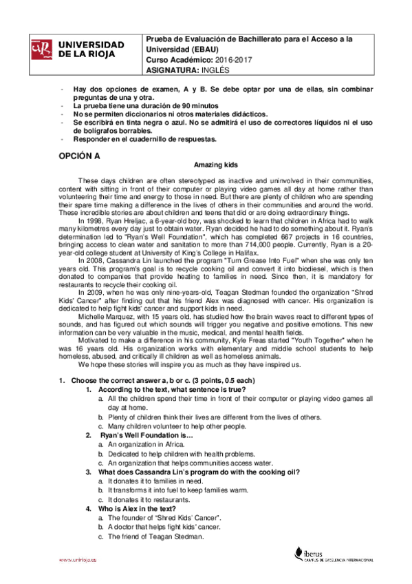 Examen EBAU Inglés