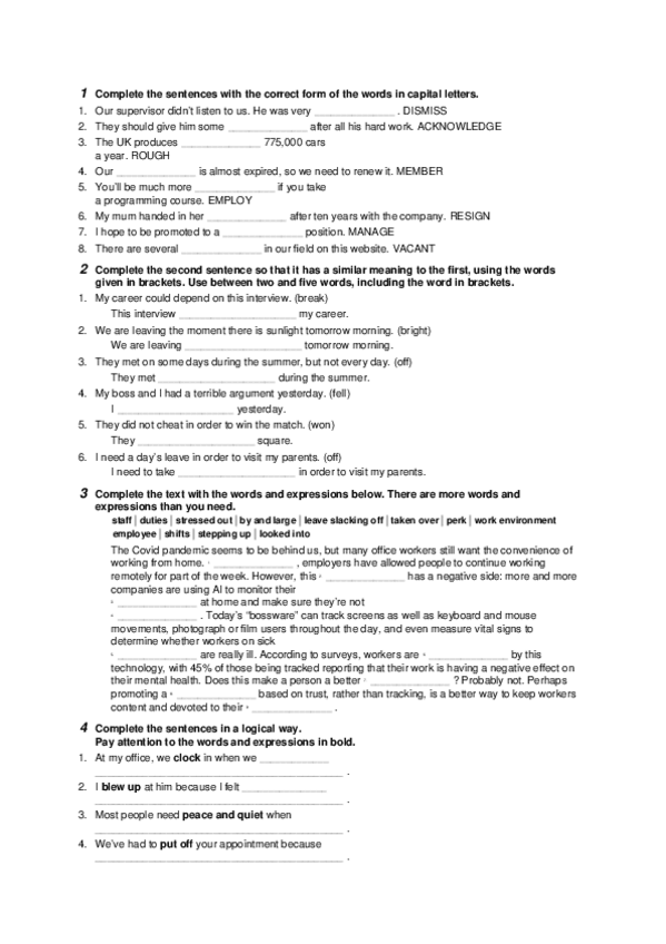 Holaa, aquí unos ejercicios B2 de segundo de bachillerato para practicar y mejorar vocabulario.