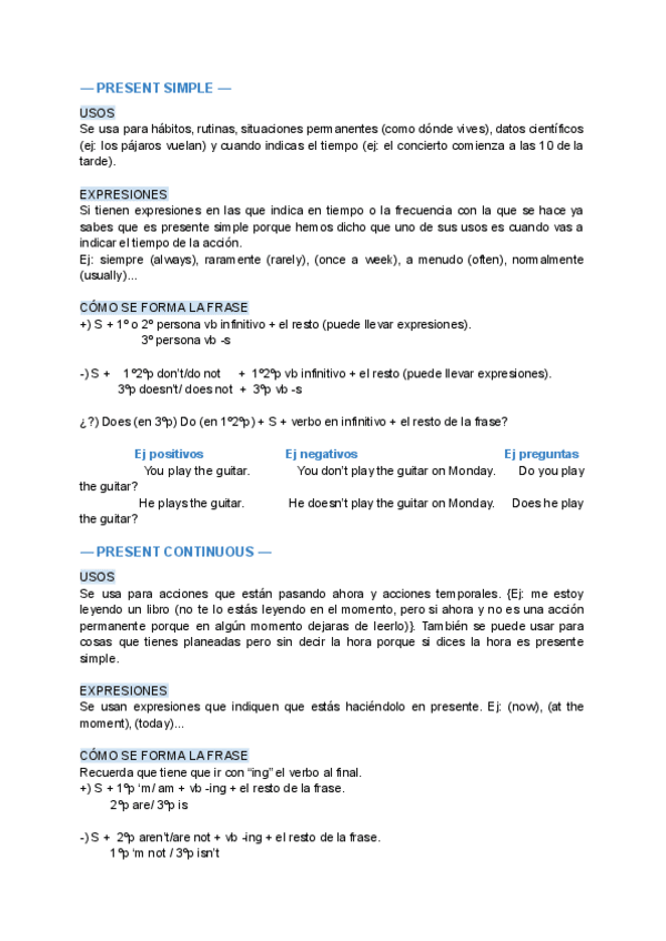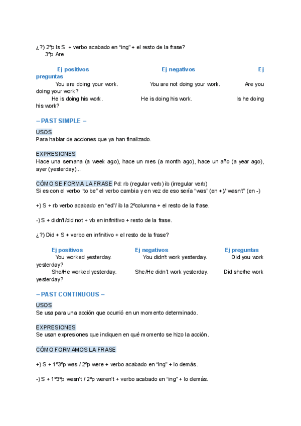 Ingles ejercicios y teoría