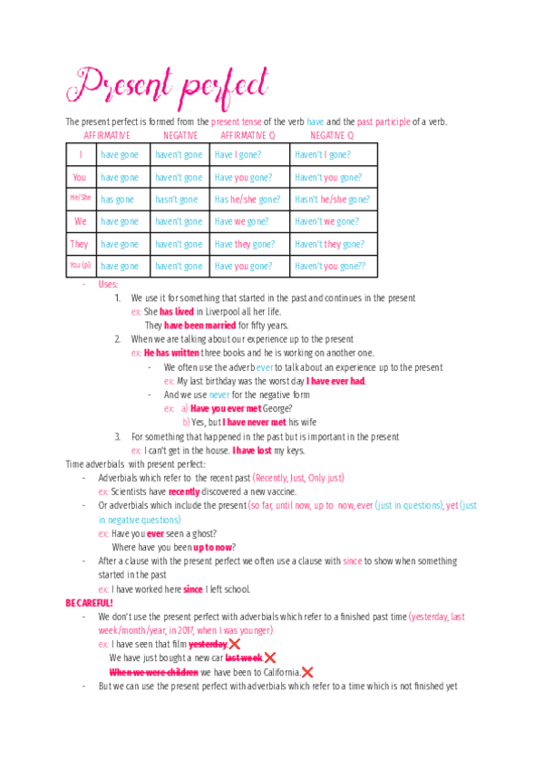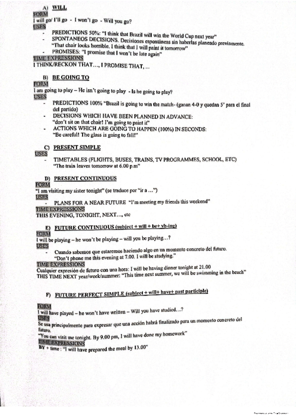 Resumen del Grammar y Writing de todo el curso, para Selectividad