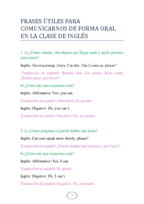 ¡Hola a tod@s! He subido un documento con frases clave para no quedarnos en blanco a la hora de hablar en las clases de inglés. Está pensado para 4º de ESO y nivel básico de la Escuela Oficial de Idiomas. Estas expresiones ayudan a ganar confianza y a perder el miedo a hablar en público en inglés. ¡Espero que os sirva!