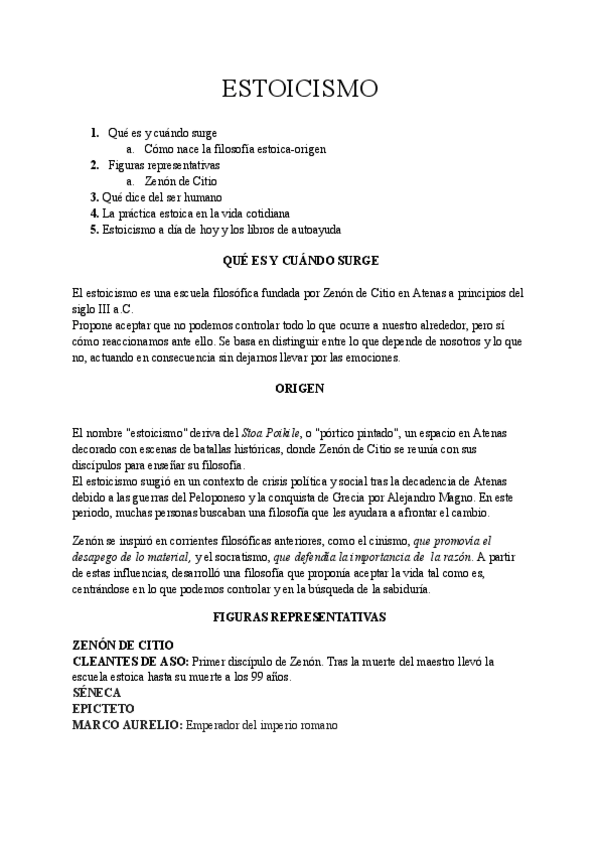 Pequeño resumen sobre el estoicismo, sus creadores, ejemplos, estoicismo tóxico, etc. Ideal para guion de exposición