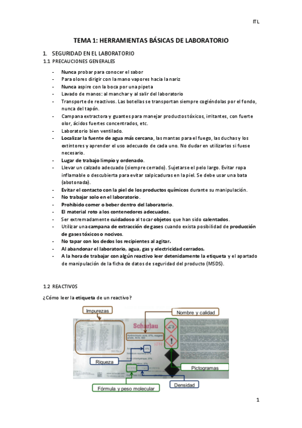 He publicado nuevos apuntes de 1º Iniciación Al Trabajo de Laboratorio: tema-1-ITL.pdf