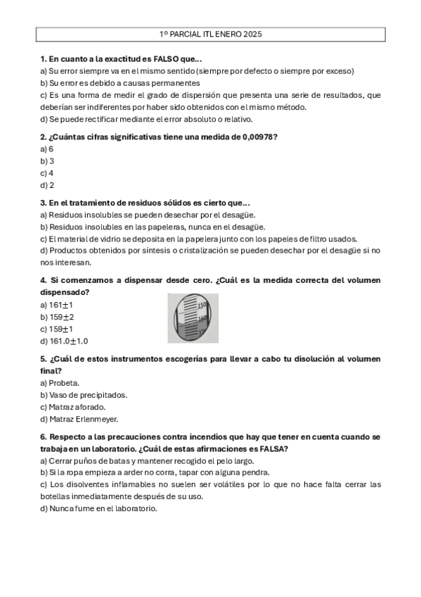 He publicado nuevos examenes de 1º Iniciación Al Trabajo de Laboratorio: 1o-PARCIAL-ITL-ENERO-2025.pdf