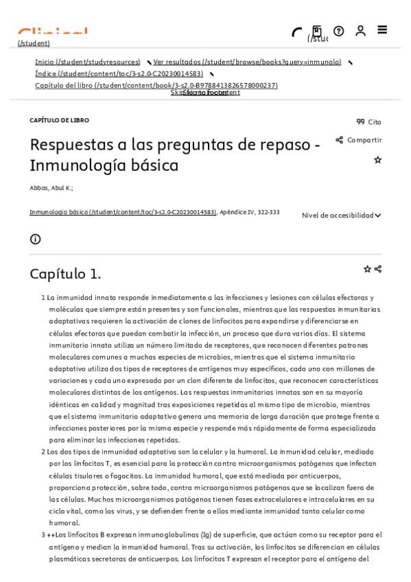 He publicado nuevos apuntes de 4º Inmunología: LIBRO Abbas clinicalkey 2025 por capitulos