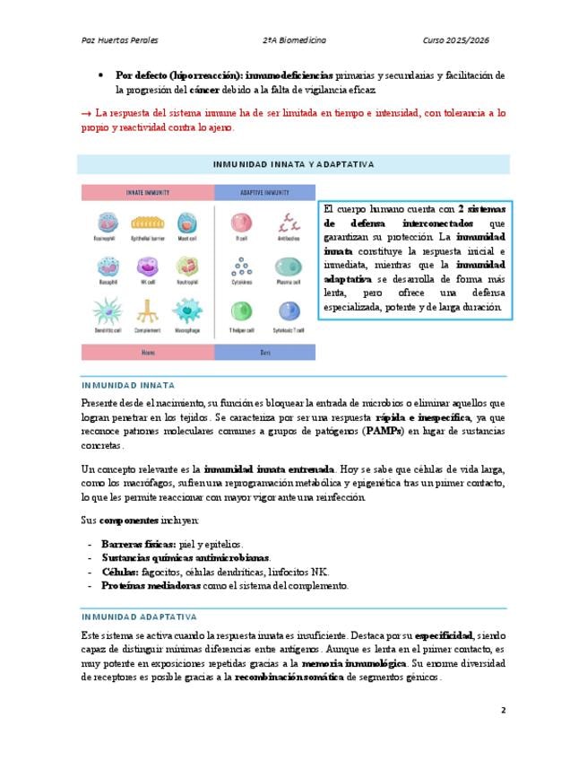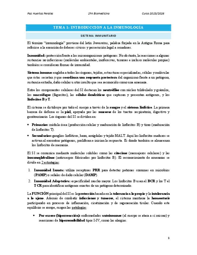 Apuntes completos A curso 2025-2026 de Inmunología contrastados con libro. Profesores: Francisco Javier Arroyo y Antonio Daniel Prieto Bibliografía usada: "Inmunología básica" de Abbas, Abul K.