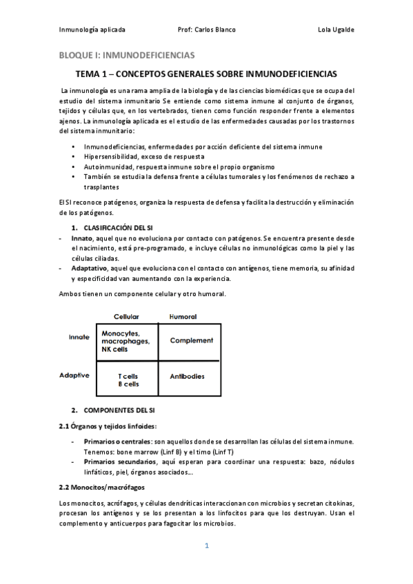Apuntes Inmunología Aplicada