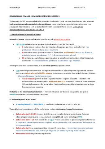 IMMUNOLOGIA TEMA 15 - IMMUNODEFICIÈNCIES PRIMÀRIES.pdf