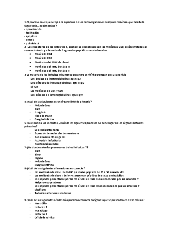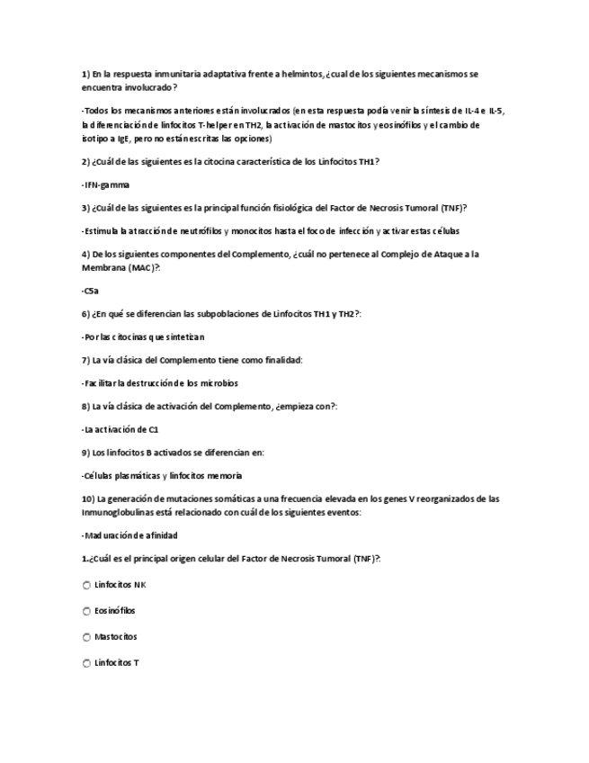 He publicado nuevos test de 3º Inmunología: Exámenes variados