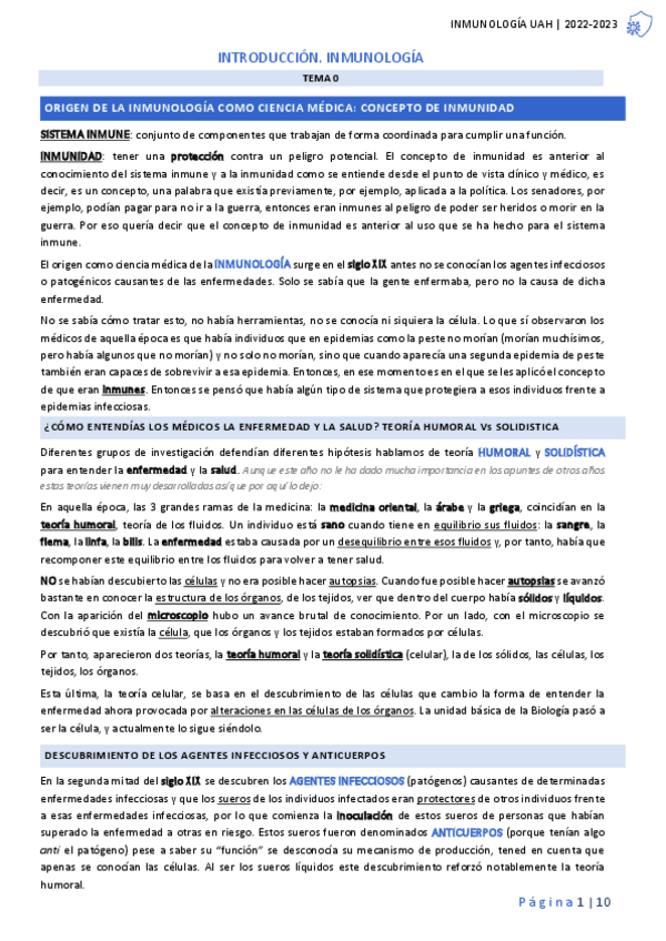 TEORÍA INMUNO PRIMER PARCIAL CURSO 23-24