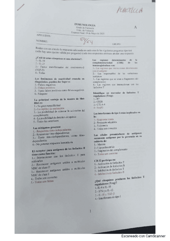 He publicado nuevos examenes de 2º Inmunología: Examen inmunología 2025