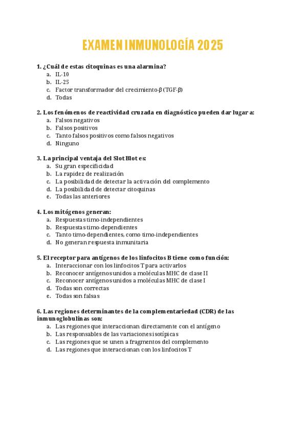 Examen inmunología 2025