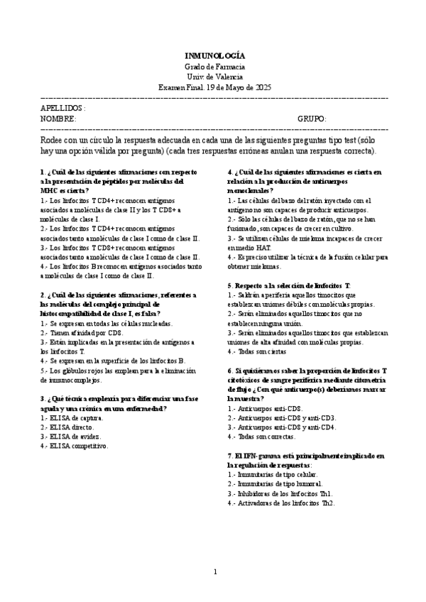 He publicado nuevos examenes de 2º Inmunología: Examen-1a-CONVOCATORIA-INMUNO.pdf