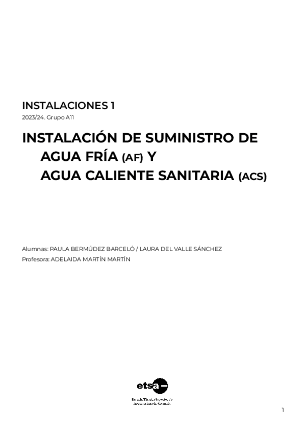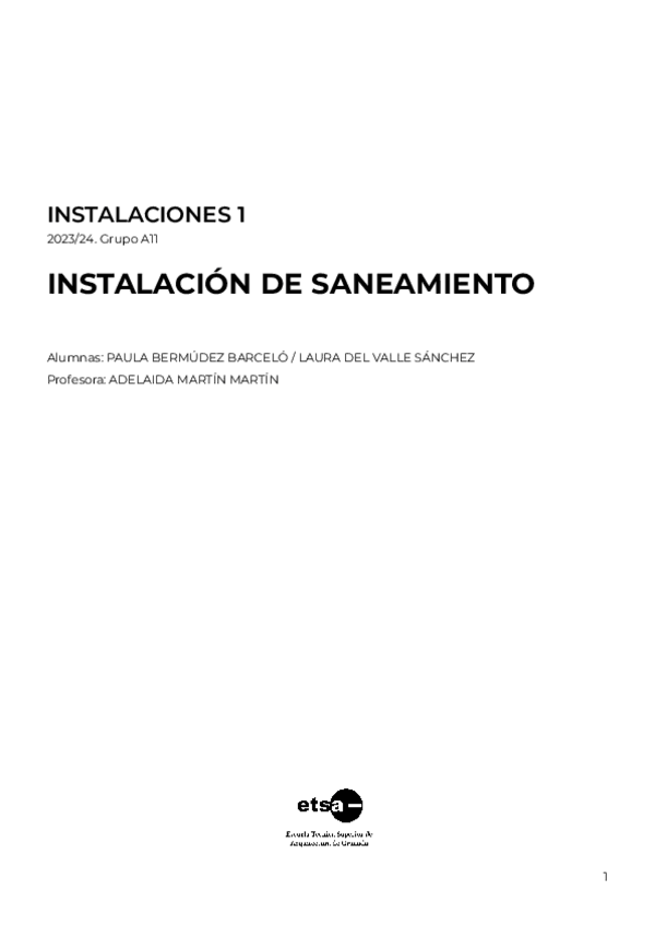 Instalaciones 1: Sistemas de Instalaciones , Abastecimiento, Saneamiento y Eléctricas