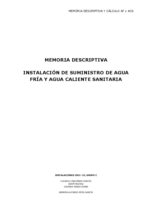 He publicado nuevos apuntes de 2º Instalaciones 1: Sistemas de Instalaciones , Abastecimiento, Saneamiento y Eléctricas: Memoria-AFS-y-ACS.pdf