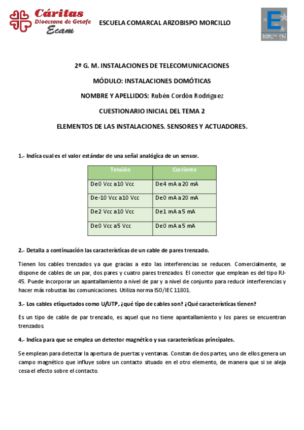 Cuestionarios iniciales - Instalaciones domóticas