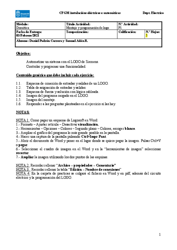 He publicado nuevos apuntes de Instalaciones domóticas: PRACTICA 1 DE LOGO