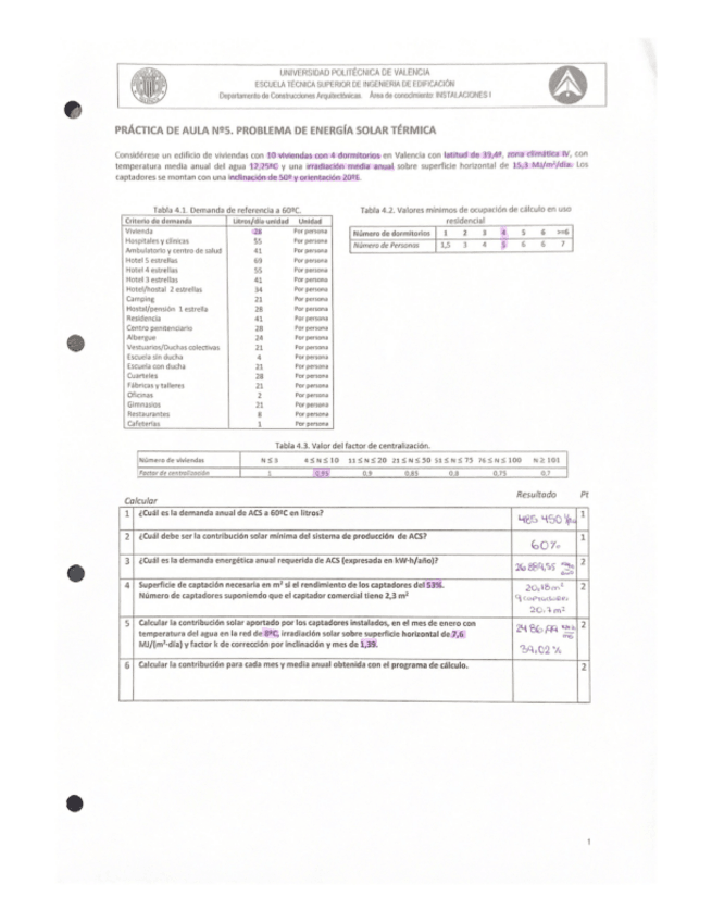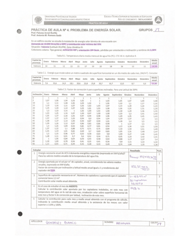 Problemas resueltos de exámenes anteriores y de clase de Agua caliente sanitaria y Energía solar. También el formulario de ambos temas