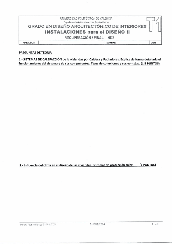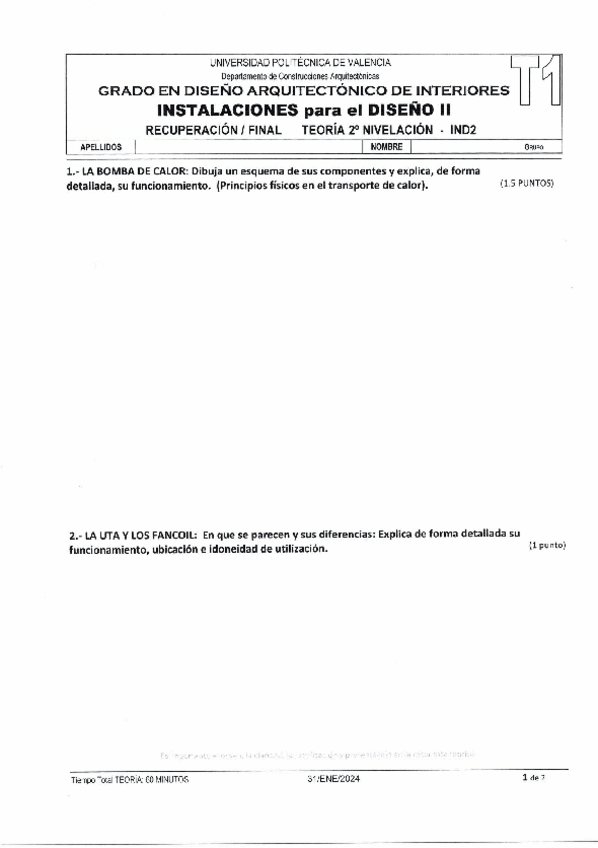 He publicado nuevos examenes de 3º Instalaciones para el diseño II: EXAMEN 1º Instalaciones II 2023-24.pdf