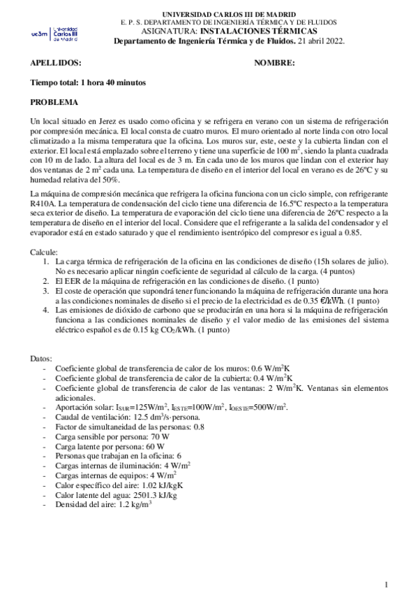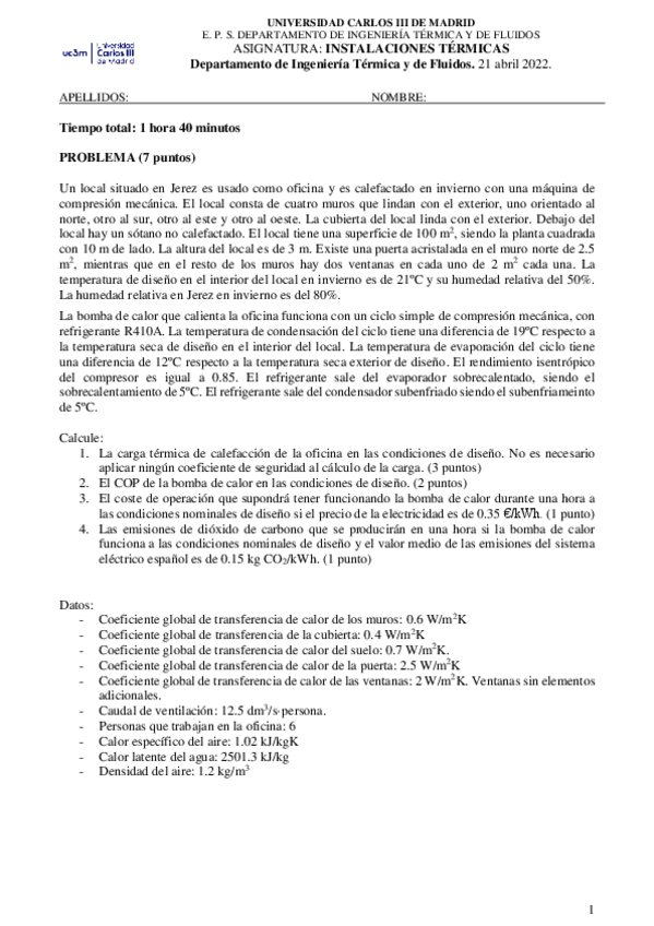 He publicado nuevos examenes de 3º Instalaciones Térmicas: InstTermOrdinaria20212022solucion.pdf