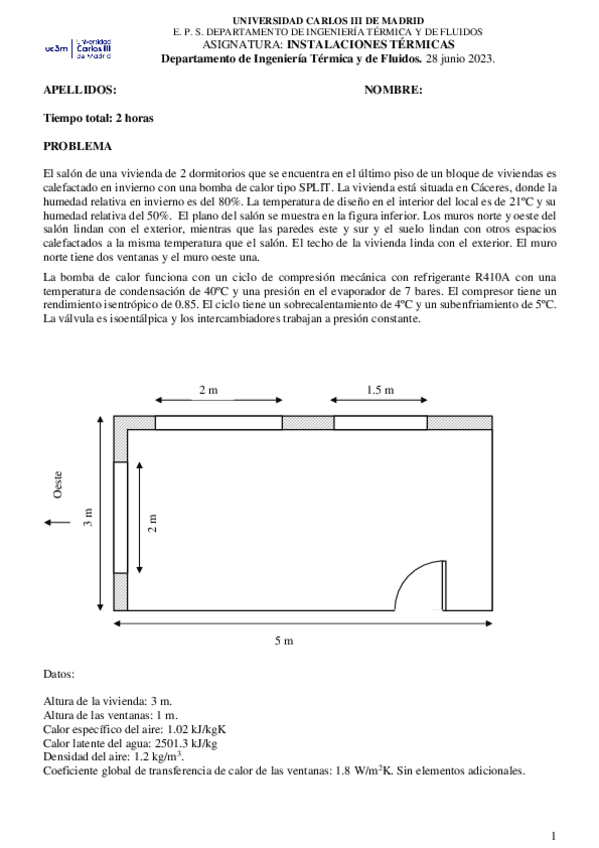 He publicado nuevos ejercicios de 3º Instalaciones Térmicas: Problemas sistemas de climatización (solución).pdf