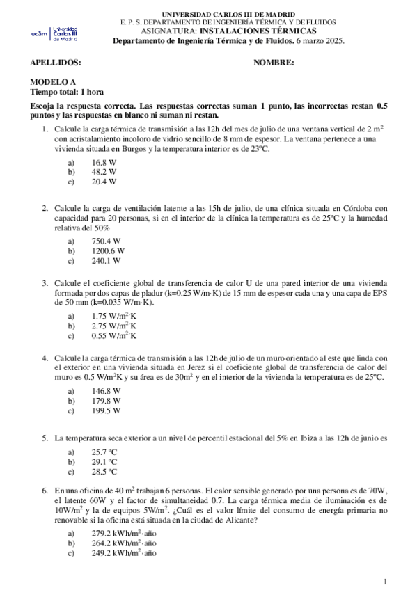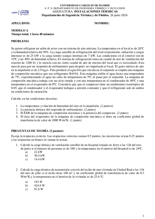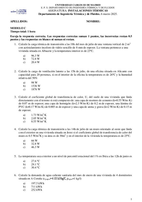 He publicado nuevos examenes de 3º Instalaciones Térmicas: SolTestCargasTermicas2025C.pdf