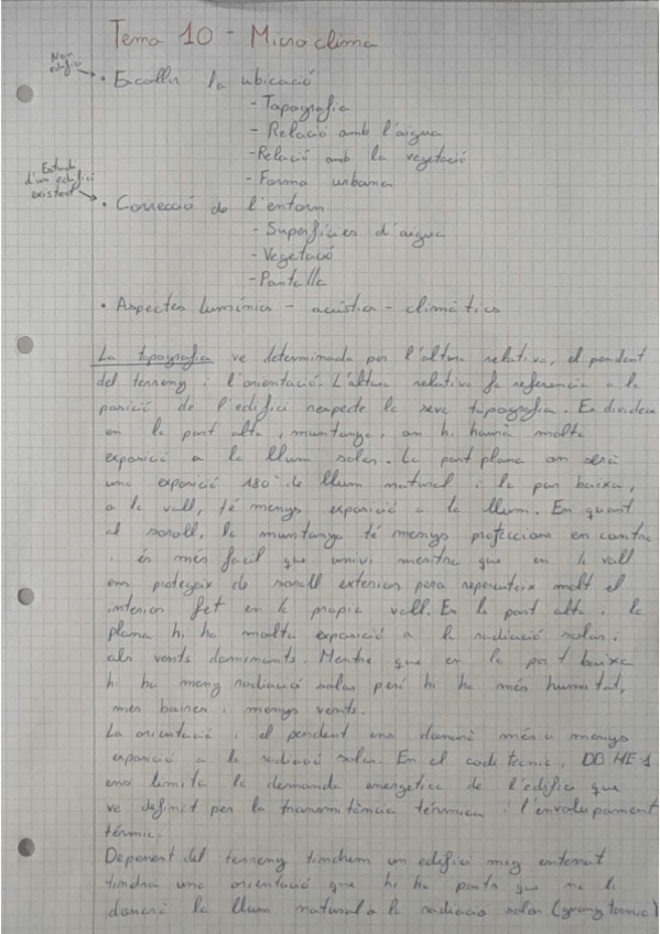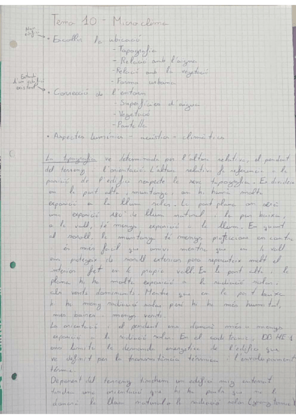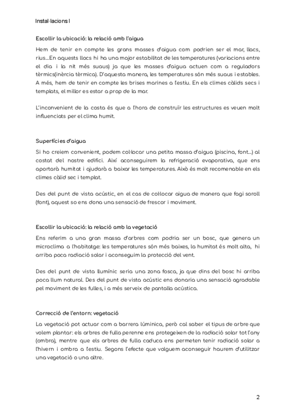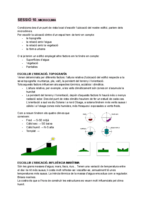 El clima segons la seva topografia, la relació amb l'aigua, amb la vegetació i amb la forma urbana i les porpostes de correcció