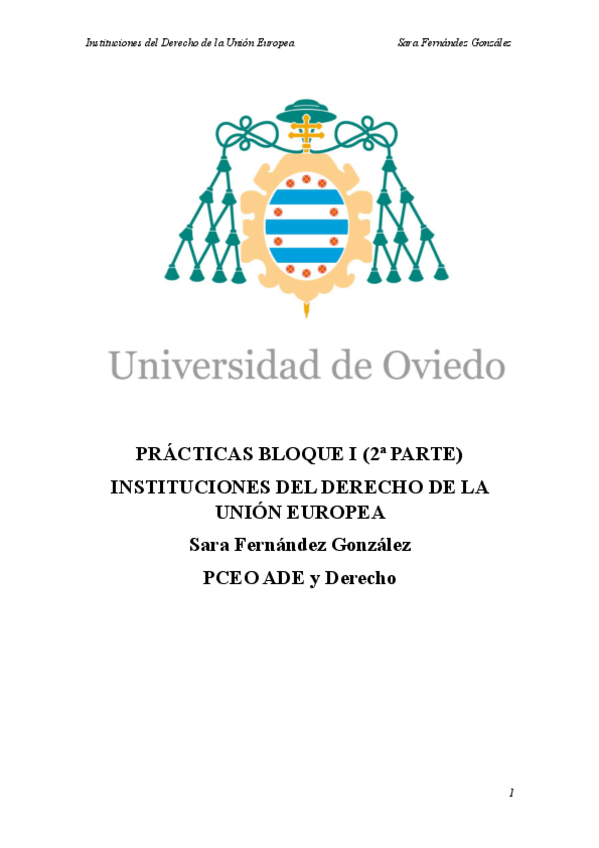 He publicado nuevos practicas de 3º Instituciones de Derecho de la Unión Europea: Practica 1 (bloque 1).pdf