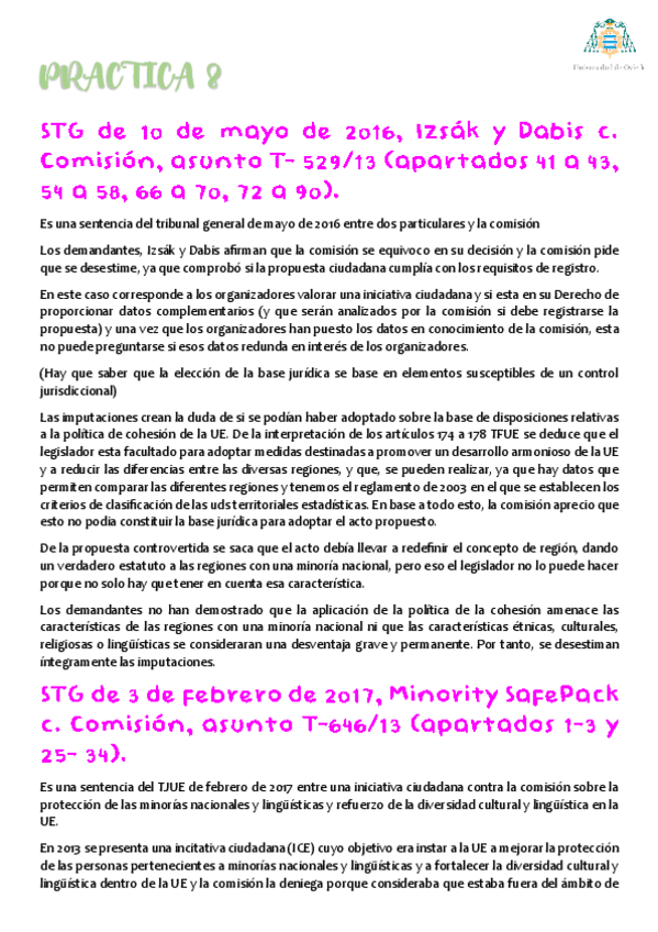 He publicado nuevos practicas de 3º Instituciones de Derecho de la Unión Europea: Practica 8 (bloque 1).pdf