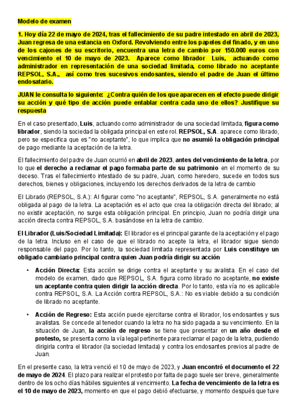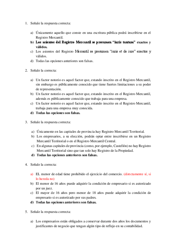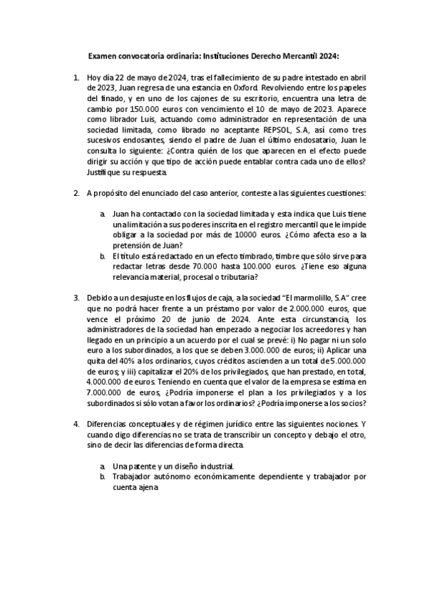 PREGUNTAS INSTITUCIONES DE DERECHO MERCANTIL MODELO DE EXAMEN PERDICES 2025