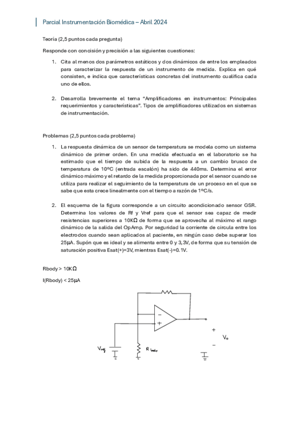 He publicado nuevos examenes de 3º Instrumentación Biomédica: Parcial-Abril-2024.pdf