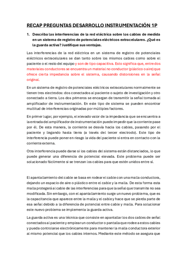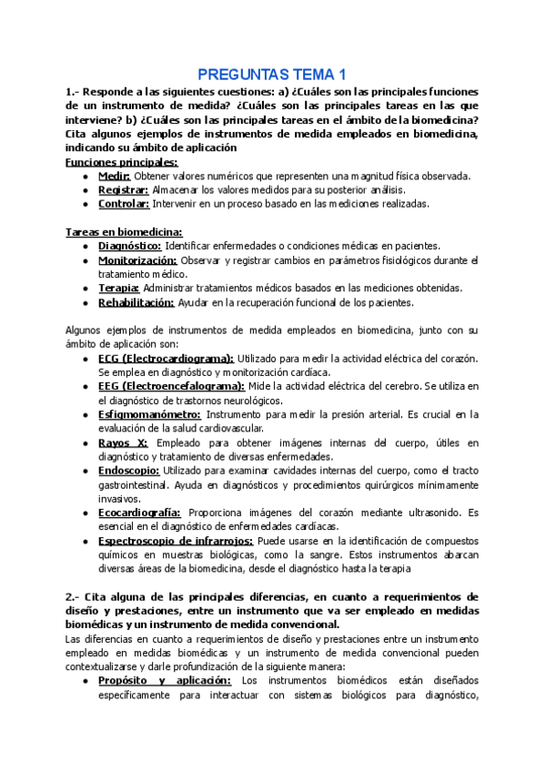Recopilatorio preguntas diapositivas Tema 1 al 6 de Instrumentación Biomédica