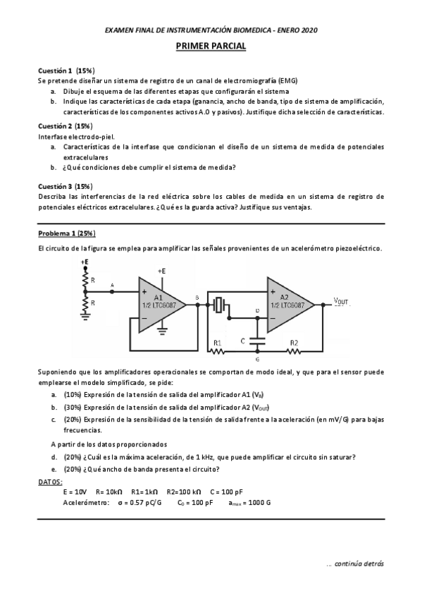 He publicado nuevos examenes de 4º Instrumentación Biomédica: Exámenes Parcial 1
