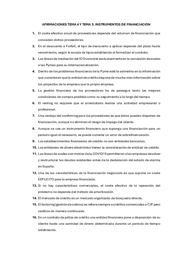 He publicado nuevos examenes de 4º Instrumentos de Financiación de la Empresa: AFIRMACIONES-EXAMEN.pdf