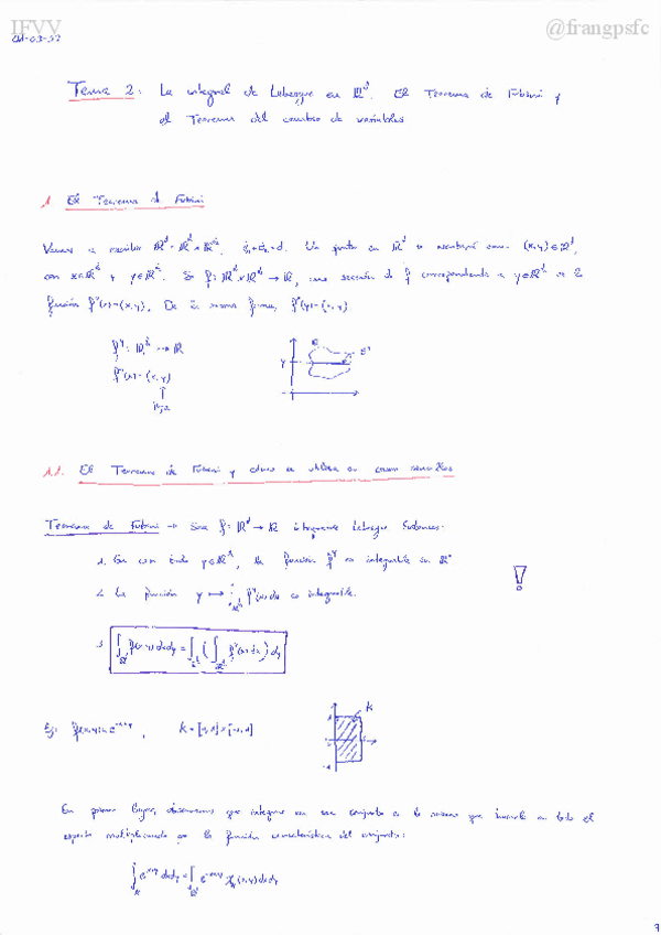 He publicado nuevos apuntes de 2º Integración de Funciones de Varias Variables: Tema 1