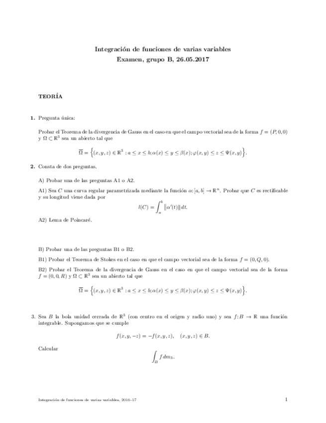 He publicado nuevos examenes de 2º Integración de Funciones de Varias Variables: Preguntas de Teoría