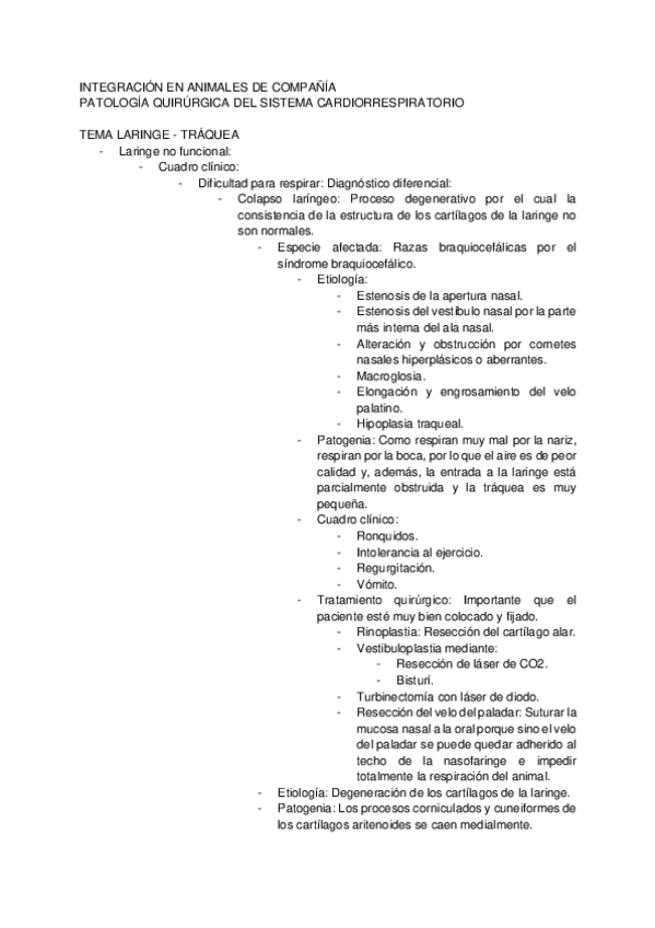 He publicado nuevos apuntes de 4º Integración en animales de compañía: Cirugía respiratoria