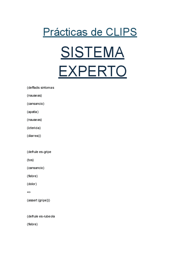 Sistema Experto y Practicas de Clips
