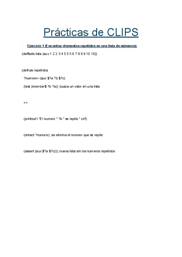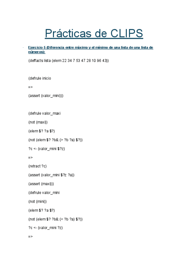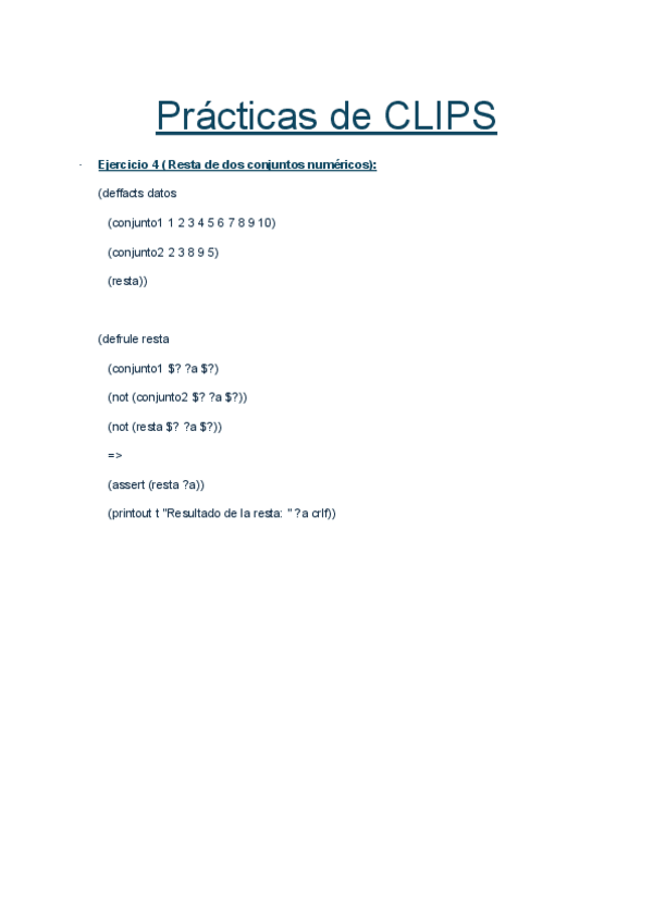 Ejercicios + Sistema experto Prácticas Clips 23-24