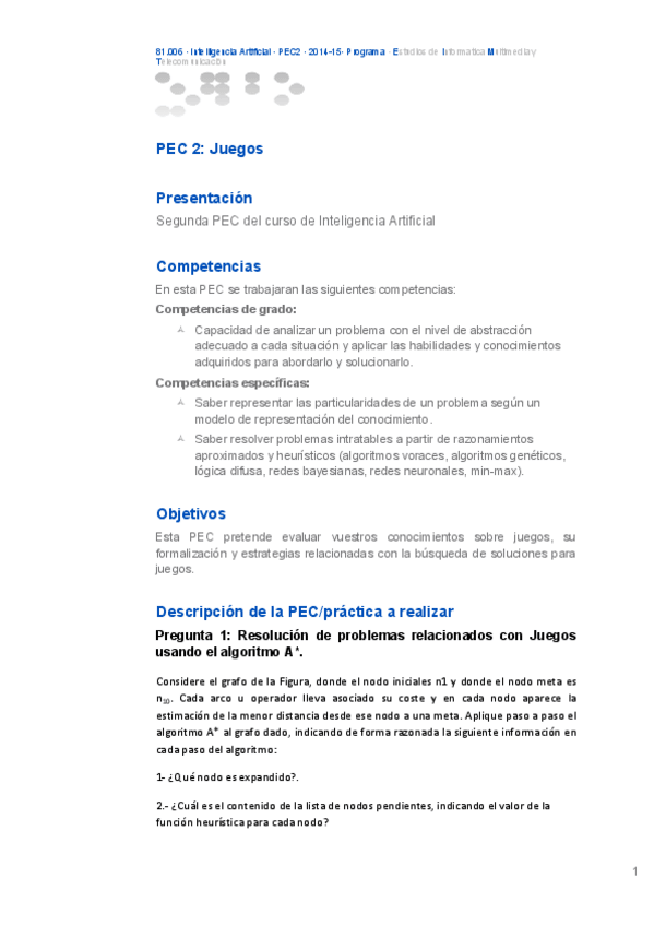 He publicado nuevos apuntes de 3º Inteligencia Artificial: 20141PEC1Solucio.pdf