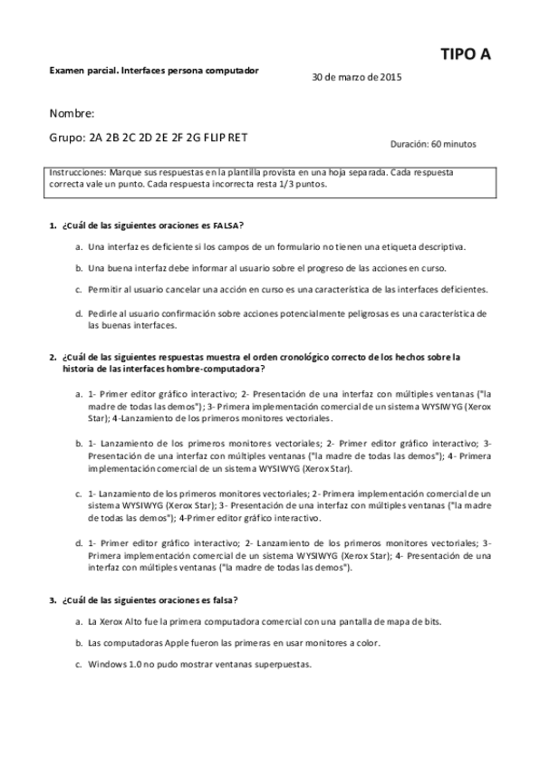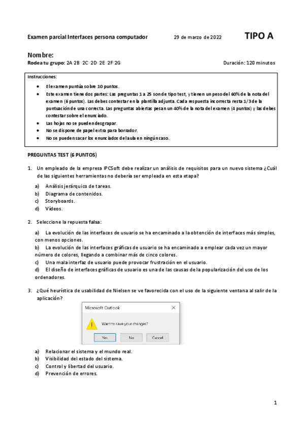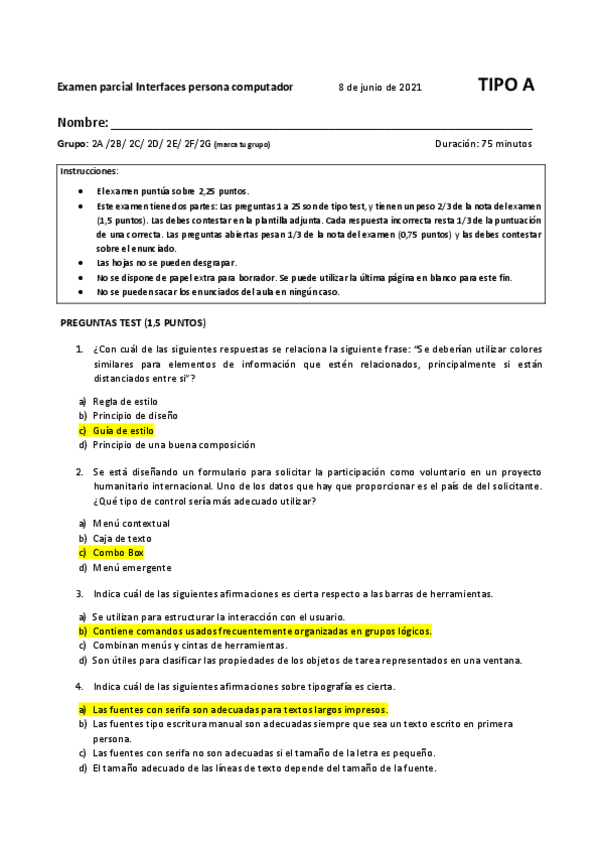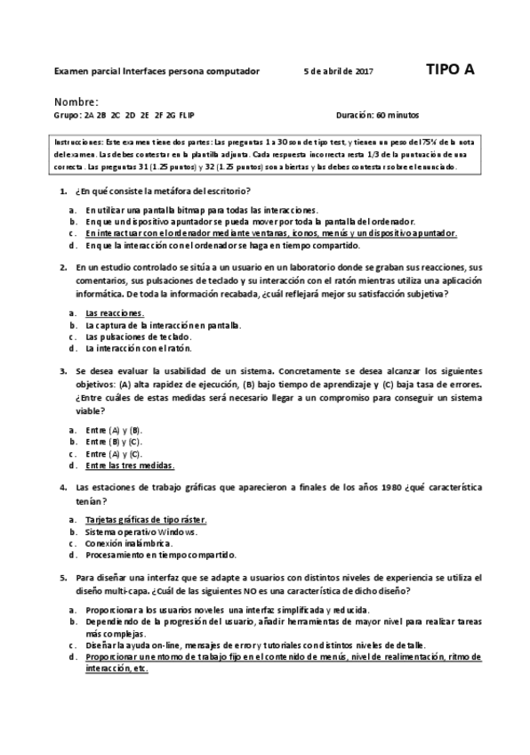 He publicado nuevos examenes de 2º Interfaces persona computador: PARCIAL 1